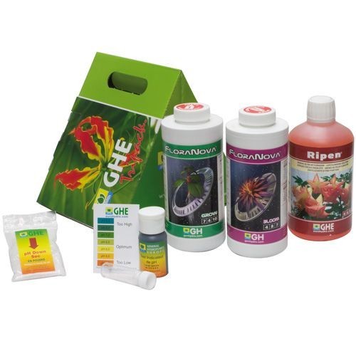 FloraNova er et komplett gjødselprodukt som kun finnes i to ulike flasker, den ene for vekst og den andre for blomstring og modning. Man behøver ikke tilføre ekstra tilsetninger.