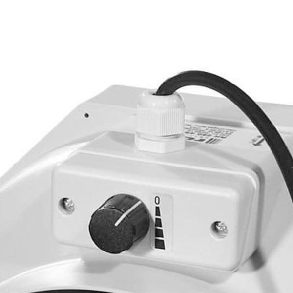 The extractor is speed controllable using voltage or frequency control, and as a protection for the motor, it is equipped with a thermal switch, that turns off the motor if it reaches a dangerous working temperature.