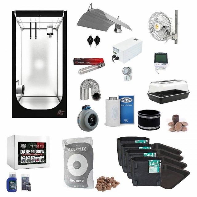 Magnetic Ballast 400W 125mm 378m3 / hr 1. CAN-Lite kullfilter 425m3 125mm 1. gummikanal 125mm 3m Aluflex 125mm 1. Monkey Fan 15cm eller RAM Clip Fan 15cm 1. Agrolab Hygrometer Nutrition: Co. Denne startpakken fra Fearless Gardener inneholder alt du trenger til 4-6 planter. Fearless Gardener Dare to Grow Box inneholder: