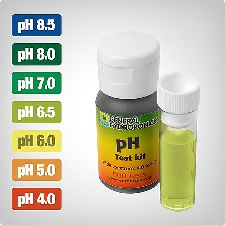 Fyll reagensrøret halvveis med næringsløsningen og tilsett 2-3 dråper av produktet. Rist deretter prøverøret og se hvilken farge løsningen vil ha. Sammenlign med fargekartet for å sjekke pH-nivået.