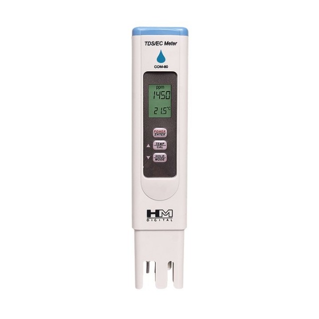 HM Digital COM-80 EC / TDS måler Artikkelnr.: Art.nr: 0443 HM Digital Com-80 er en ny rimelig måler med funksjonelt design som er perfekt for å teste bruksområder som hydroponikk og for eksempel styrken til næringsløsningen. NOK799,00 inkl. mva. På lager Antall Kjøp Del dette Produktinfo Produktanmeldelser (0) EGENSKAPER* Måler EC-verdi (elektrisk ledningsevne), TDS (totalt oppløste faste stoffer) og temperatur.* Automatisk temperaturkompensasjon (ATC)* Mål: EC: µS, mS; TDS: ppm, ppt* Vanntett skall* Måleområde: 0-9999 µS, 0-5000 ppm; 0-9,9 mS, 0-5,0 dpi* Digital kalibrering* Automatisk avstenging, "data-hold" funksjon og batteriindikator for avlesning av batterinivå.* Skjerm: Stor LCD-skjerm.* COM-80 er kalibrert med kalibreringsvæske 1413, digital kalibrering ved hjelp av trykknapper.SPESIFIKASJONER:EC-måleområde: 0-9999 µS, 0 - 9,9 mSTDS-måleområde: 0 - 5000 ppm (mg/L); 0 - 5,0 pptTemperaturområde: 0-80 ° COppløsning: 1 µS / ppm, 0,1 mS / ppt.Temperaturoppløsningen er 0,1 °CNøyaktighet: +/- 2 %Kalibrering: Digital kalibrering med trykknapp.Strømkilde: 3 x 1,5V batterier inkludert (modell LR44)Dimensjoner: 15,3 x 3,2 x 1,8 cmVekt: 53,9g Skriv en produktanmeldelse og del dine erfaringer med dette produktet med andre kunder. Email Navn Din vurdering? 1 star 2 star 3 star 4 star 5 star 6 star Oppgi en tittel for anmeldelsen din Skriv inn produktanmeldelsen i feltet under