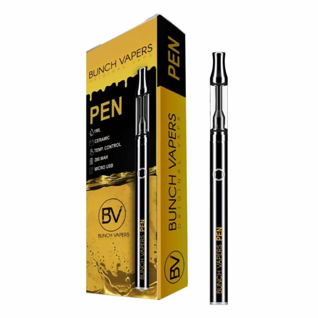 High quality ´Bunch Vapers´ pen vaporizer from ´Qnubu´. Thanks to its ceramic heating system, this pen vaporizer is ideal for liquids with extracts that have a higher density. The cartridge holds 1ml liquid. The 280mA/h battery is charged via USB.